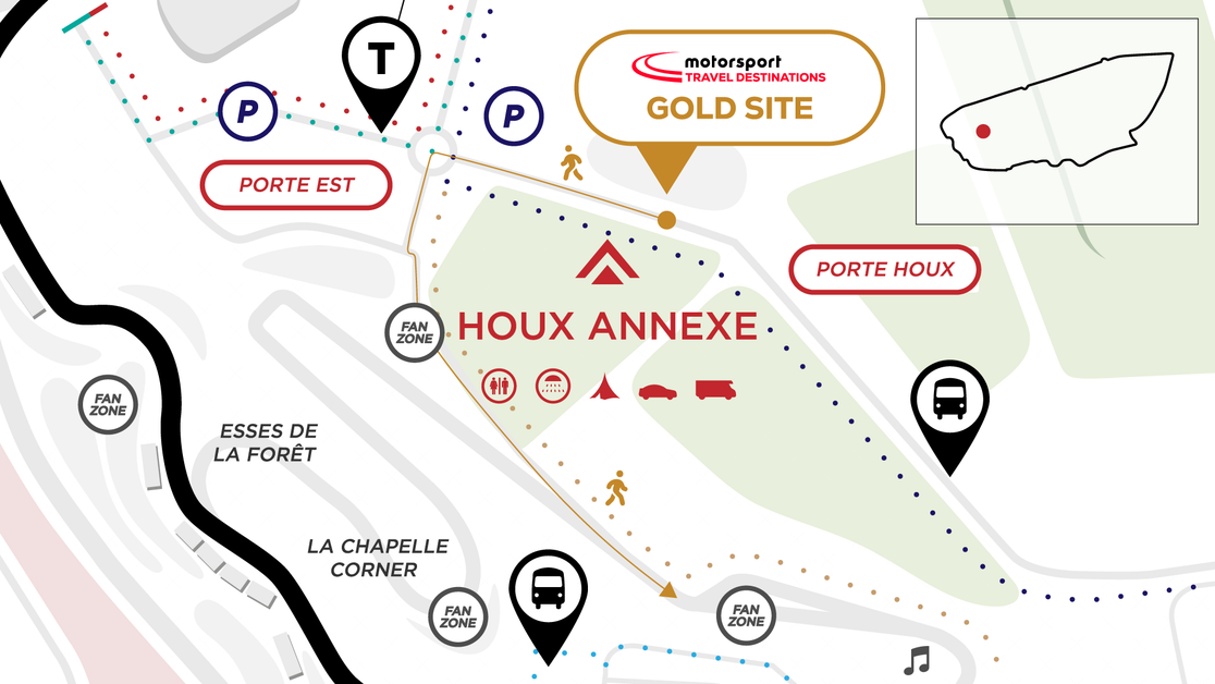 Located a short walk from the circuit action, Houx Annexe combines a lively social scene with the convenience of marked pitches reserved for your vehicle and fellow guests for the full event week (usually from the Monday before the race).